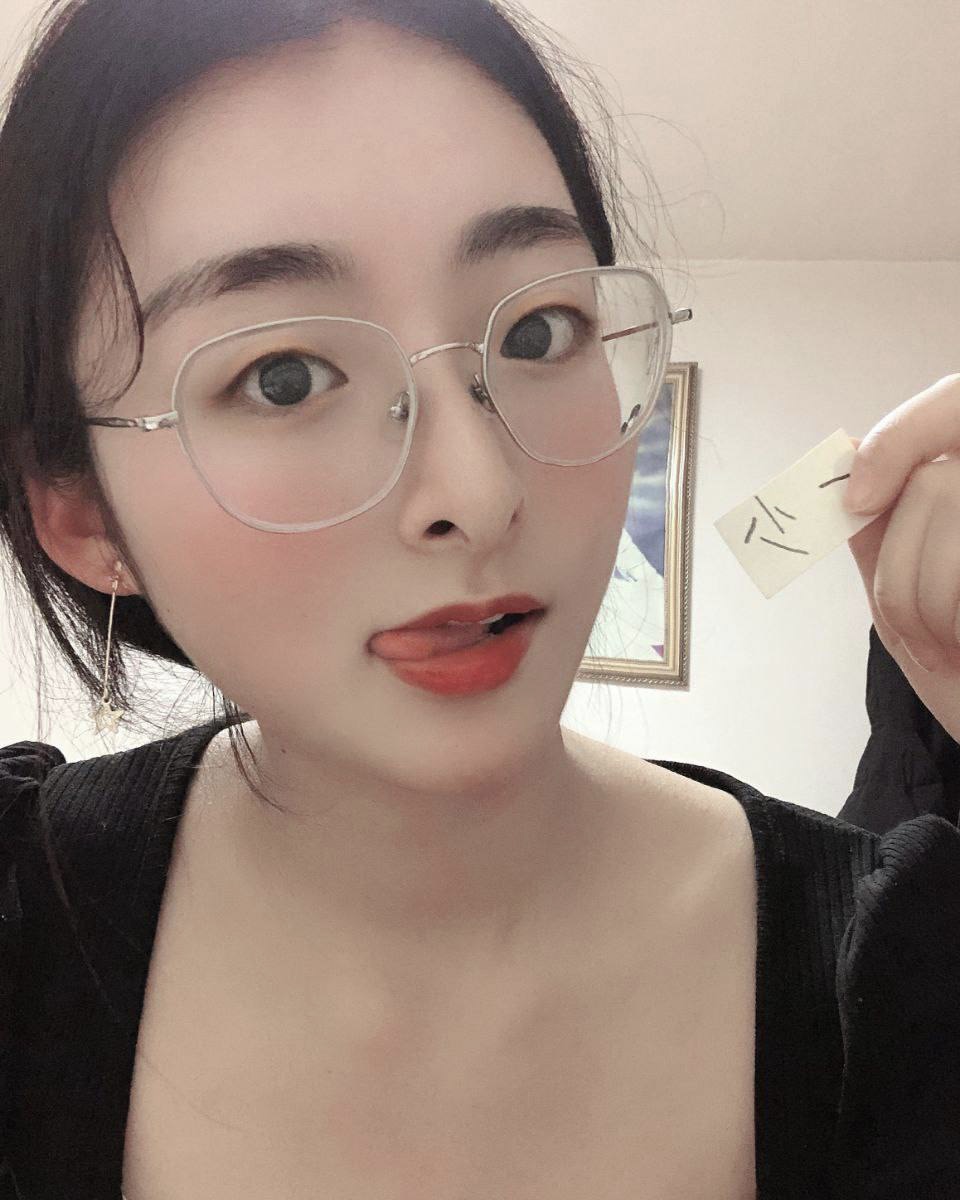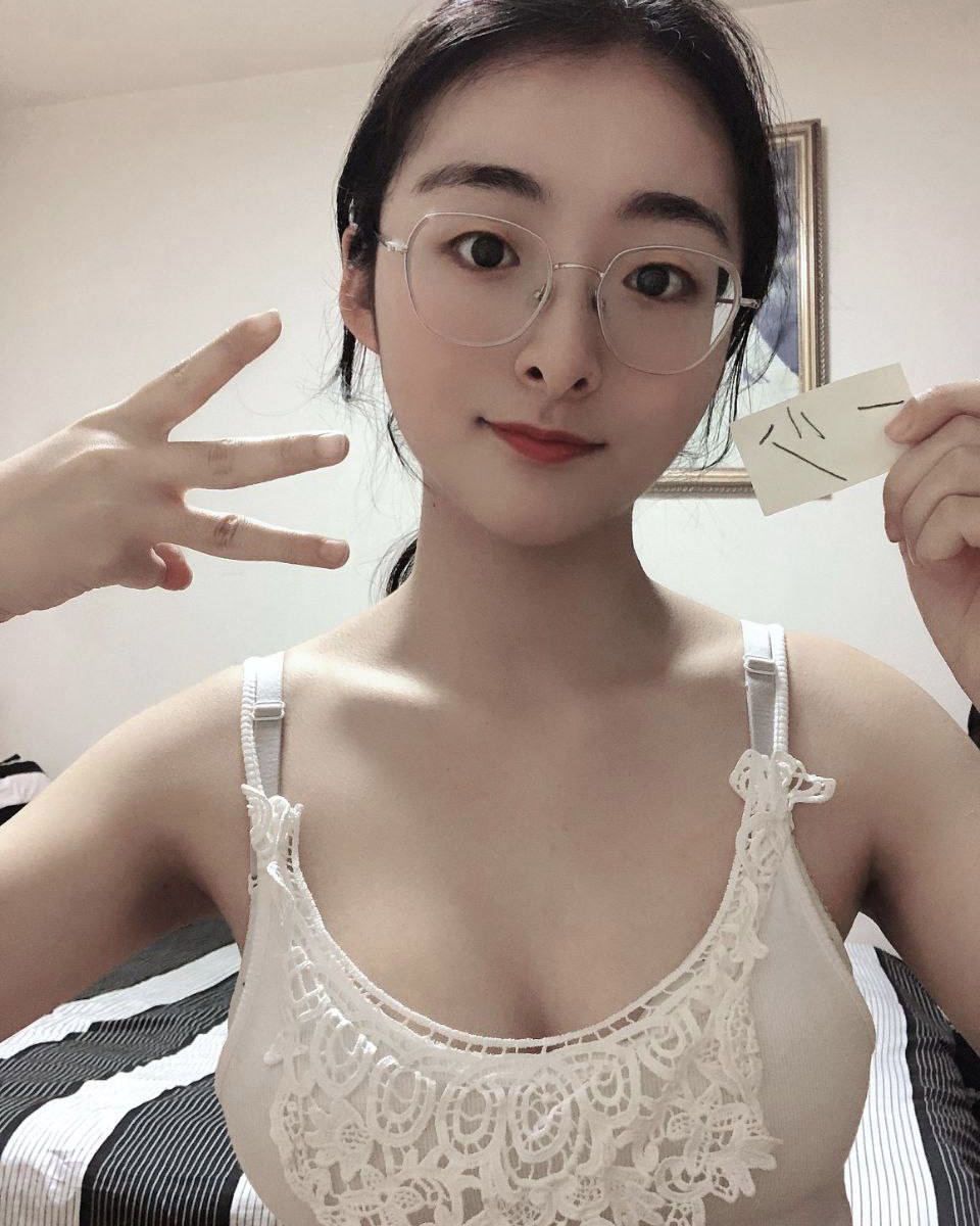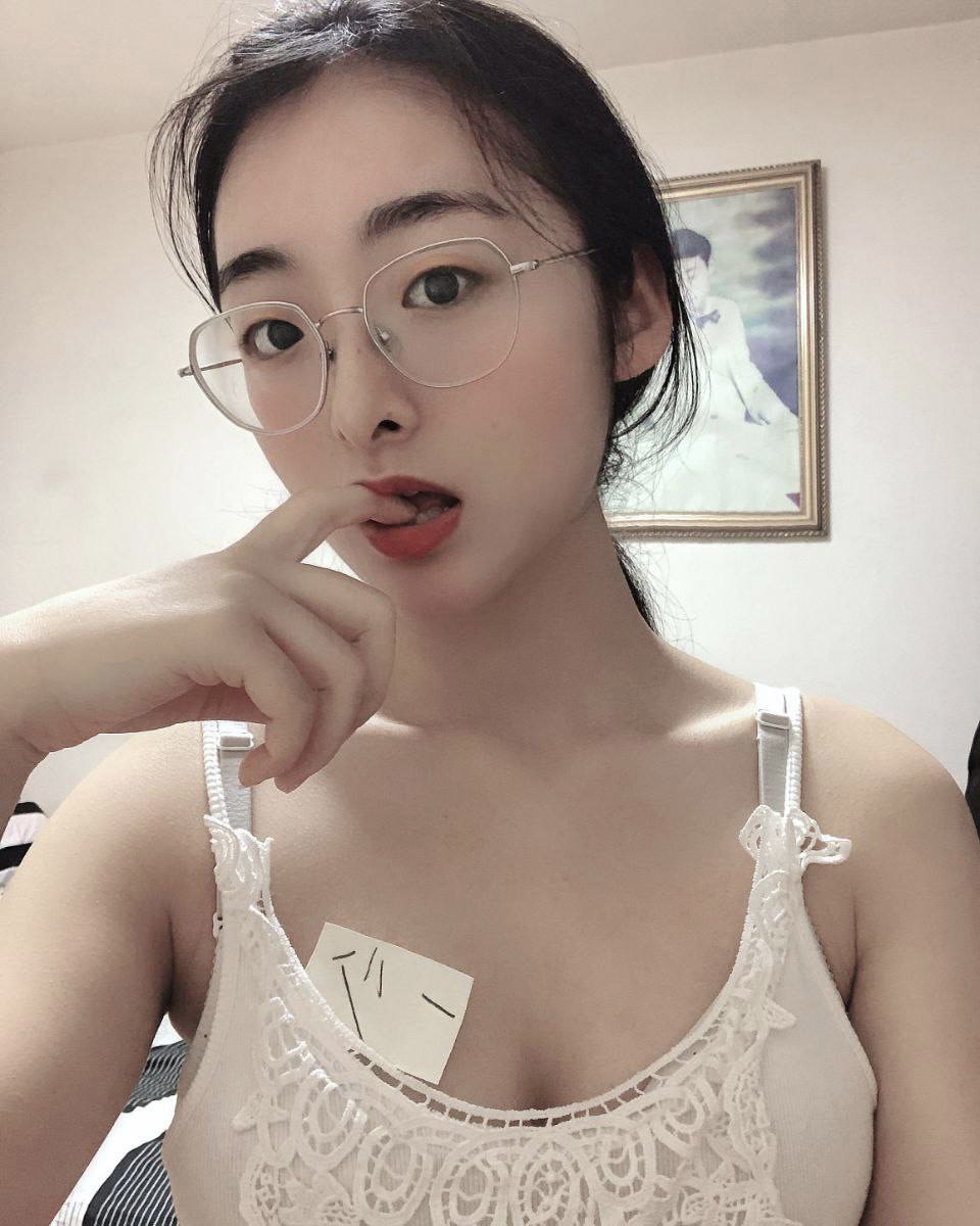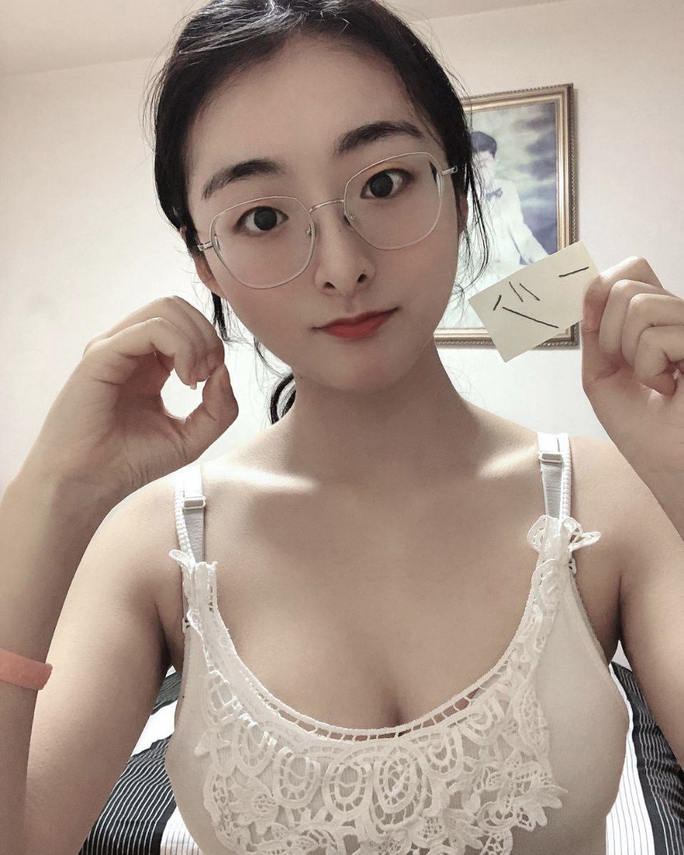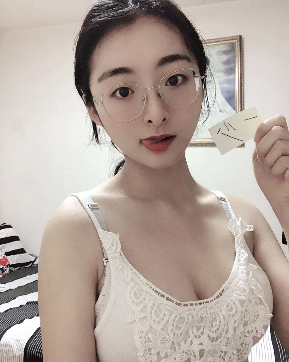 反差大二眼镜妹
